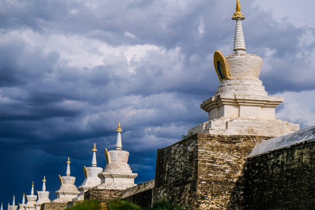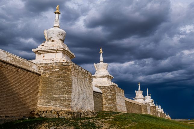 One of the key attractions of Central Mongolia is the Erdene Zuu Monastery, the oldest surviving Buddhist monastery in Mongolia. The first temple of Erdene Zuu (Hundred Treasures) was built in the 1580s. At its peak, the complex had more than 60 temples. Its fortune waxed and waned with wars, political shifts and religious purges. The Erdene Zuu Monastery was closed for a long time but became active again in the 1990s.