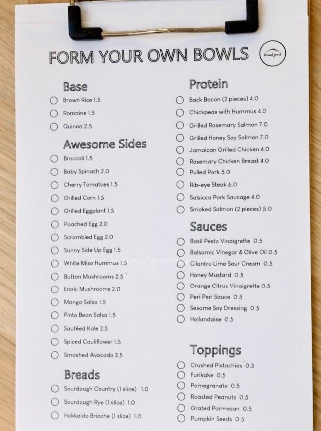 Here is a picture of the Bread Yard menus. It does not have a very wide selection of food. Many of dishes are similar to those in other cafes in Singapore. Grain bowls, sandwiches. toast and pasta items are common place. Why, you may ask, do we think that they could be one of the best cafes in Fusionopolis? The answer is their execution. For some reason, common food seem to taste better here.