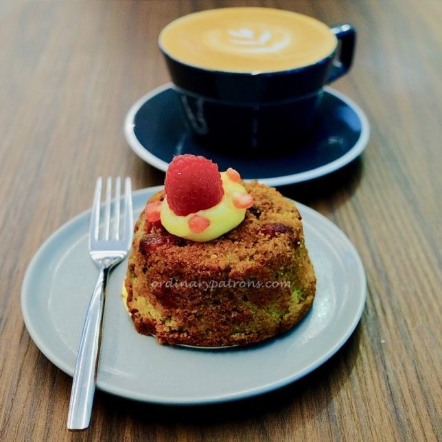 We thought that the cakes and snacks were somewhat pricey, but as a matter of habit, it is always nice to munch on something with coffee. I decided on pistachio cranberry cake ($7). It was a small crumbly cake. The taste and texture reminded me of fruitcake. A pleasant cake which played a supporting role at our coffee break at PPP Coffee Funan Mall. The coffee is clearly the star at this cafe.