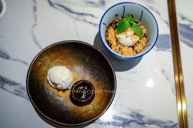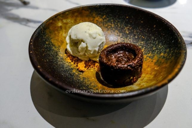 Our desserts were chocolate lava cake with gelato and purple rice porridge with coconut ice cream. The desserts were much better than the preceding dishes. The chocolate lava was the best dish of the day. The cake was moist and had a perfectly gooey core.