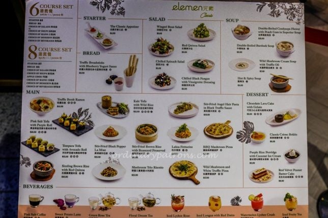 According to their website, “Elemen is a dining concept focused on a modern interpretation of natural and meatless cuisine”. Elemen Classic Great World City is one of several restaurants in the Elemen group of restaurants. They have outlets in Millenia Walk and Harbourfront and a new one opening in Paya Lebar Quarter. We were told that the “Classic” label indicates a more upmarket version of the regular Elemen restaurant. For example, truffle flavours are found in more dishes in this restaurant.