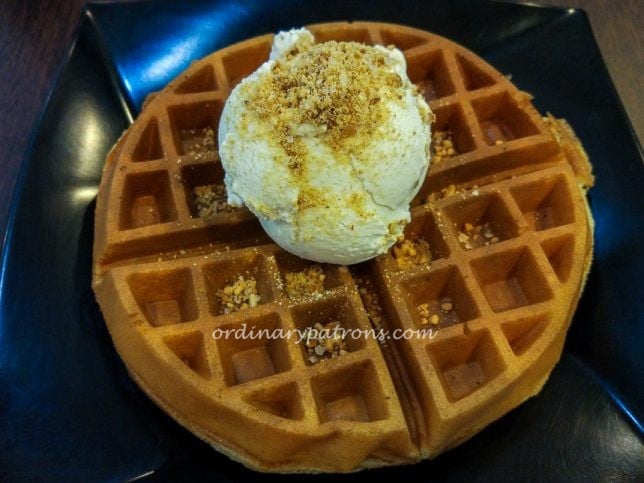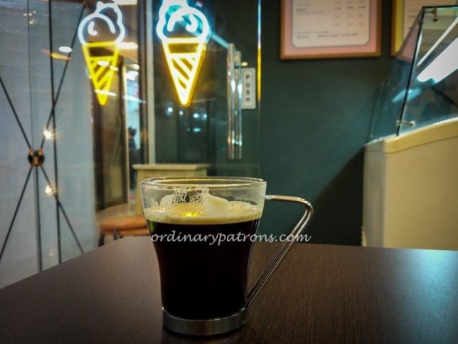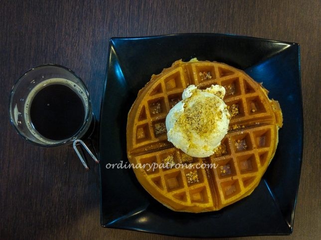 I ordered waffles with a single scoop of premium flavour Muah Chee Ice Cream ($7.80) and a long black ($3.50). The coffee was served first and it was not bad at all.
