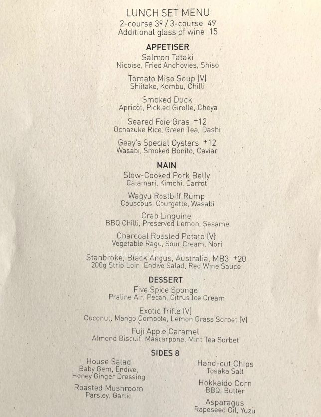 Here is a picture of the lunch set menu at SKAI and some pages from the a la carte menu. Diners get a choice of a 2 course or 3 course set lunch for $39++ and $49++ respectively.