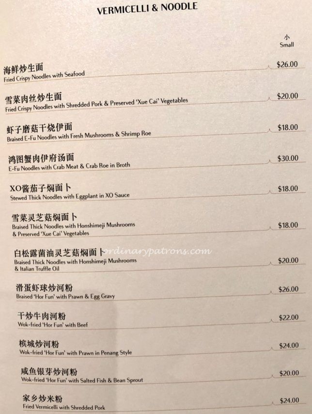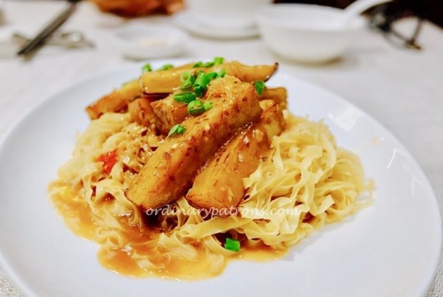 Our last dish was something more familiar – braised noodles with XO sauce egg plant ($18). This is one of our favourite noodles dish. The crunchy texture (some might say it is “Q”) of the mee pok and the thick succulent pieces of egg plant are the main attractions.