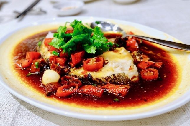 We tried the steamed cod fish fillet with chillies ($32). The dish looked scarily spicy when it arrived, with lots of red chillies all over the dish. This dish’s bark was worse than its bite. It was only gently spicy in taste as we had been promised. An unusual and enjoyable fish dish.