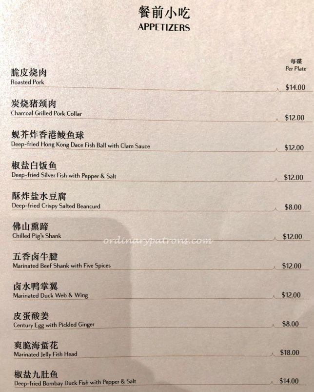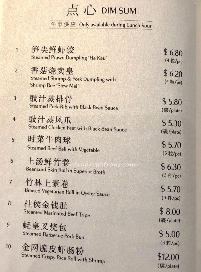 Here are pictures of some sample pages from the Imperial Treasure Great World City Menu and also the dim sum menu that is available for lunch. We selected a mix of dishes from both menus.