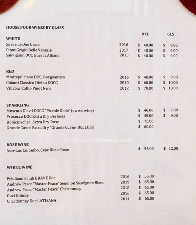 We thought that the prices for wine were quite reasonable. The Chianti Classico wine ($10 per glass) was pretty good.