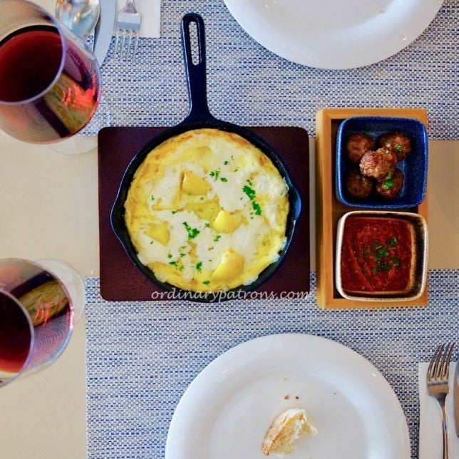 Our meal at the new Roots Mediterranean restaurant started with a couple of tapas dishes. The Spanish Omelet with potatoes topped with melted cheese ($8) was a simple but tasty dish. The Spanish style meatballs served with spicy tomato sauce ($8) was also enjoyable.
