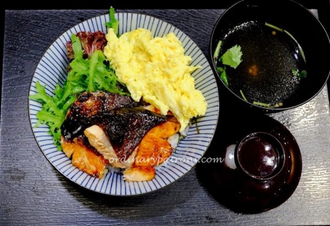 We decided to try two items from the September lunch special menu – Ebi Tempura Soba and Sake Teriyaki Don ($9.90++ each) and a grilled scallops dish from the Chef’s Special menu. A pleasant salad was served at the start of our meal.