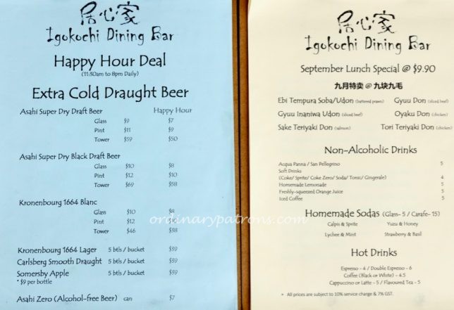 The Igokochi Dining Bar menu is extensive. Here are just some pictures of sample pages from the menu to show the range of items available.