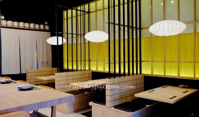 Igokochi Dining Bar has two personalities. The bar area and the outdoor area exudes an izakaya, Japanese pub atmosphere. The inner dining area has an elegant restaurant atmosphere.