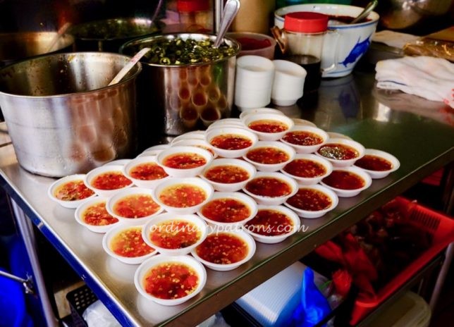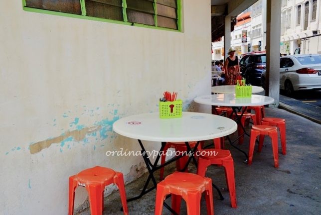 The front of Foong Kee Coffee Shop is plastered with all culinary rewards. I noticed that the level of cleanliness and neatness is higher than the usual coffee shop in Singapore. For example, the tables are clean without any trace of griminess. Even their chilli sauce dishes are stacked with military precision. There are some tables indoors but for the best coffee shop dining experience, the best seats are those along the pavement or five-foot way.