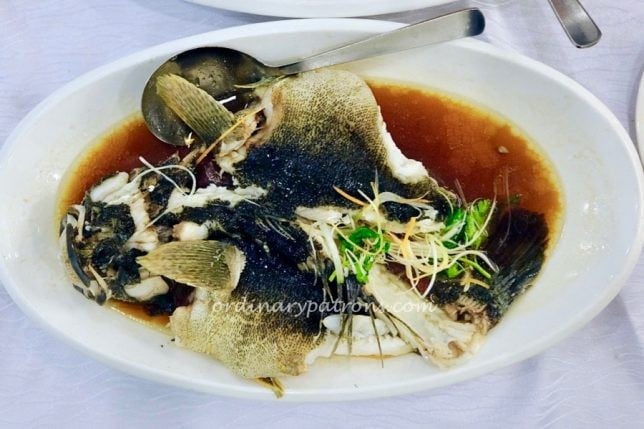 We asked for a small Soon Hock fish that would be appropriate for two persons. We were served a 0.78kg specimen that cost about $60. The live fish was first shown to us. It always feels luxurious to eat a whole fish, especially a live one that was quite adequate for two persons. The fish was fresh and cooked just right, steamed Hong Kong style.