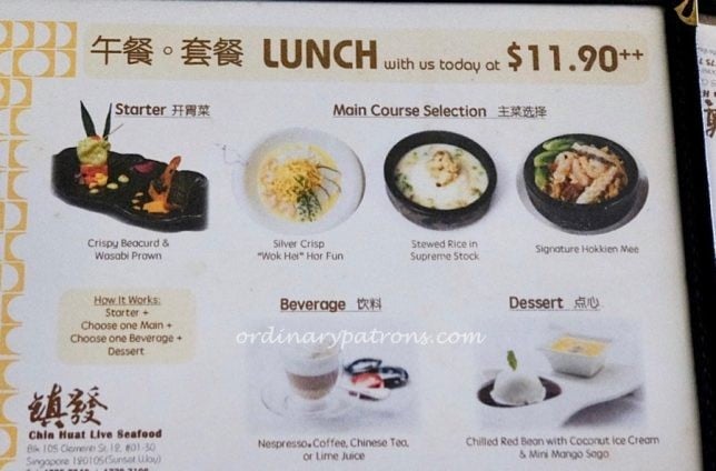 We cannot confirm whether Chin Huat Live Seafood is indeed the first live seafood restaurant in Singapore. But it does look like it is quite believable, judging by the great demand for live seafood at this restaurant in Clementi / Sunset Way. The pictures of the famous personalities at the restaurant and the crowds of people in the evenings, especially weekends. They are quieter at lunchtime when an affordable $11.90++ set lunch is offered.