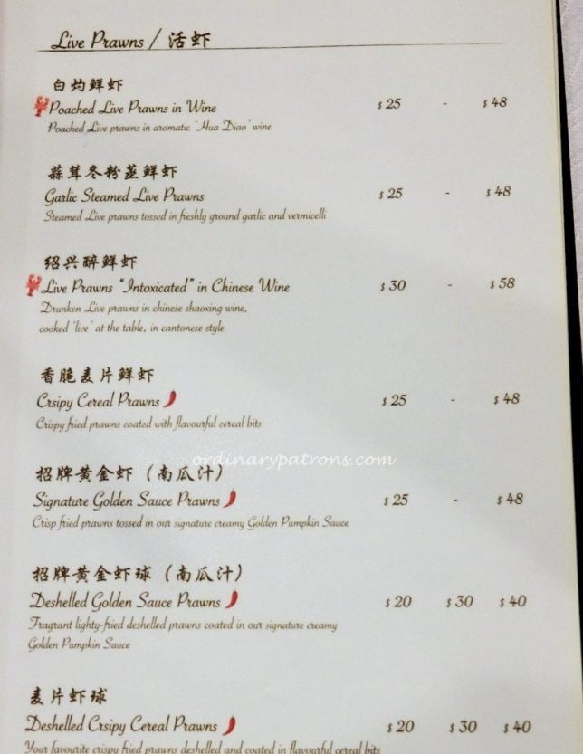 Here are pictures of some pages from the menu. Apart from live seafood, they also serve a wide variety of cooked food items. We did not have any crab dish that day. Instead we ordered a fish, live prawns and a noodle dish.