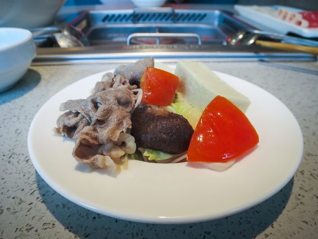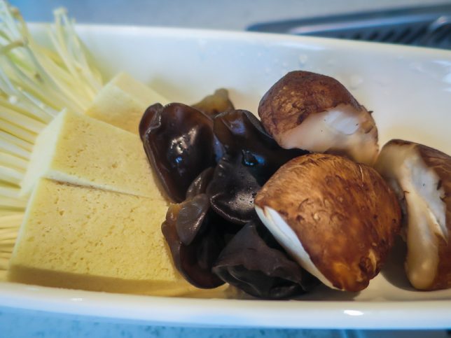 The beef was sliced to a nice thickness and the rolled slices were neatly presented. The platter of vegetables, mushrooms and beacurd was of a sizeable portion.
