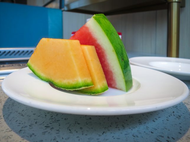 As I did not have to wait in queue, I did not get to try their free snacks or the popular manicure service. The attentive service and freebies, however, started as soon as I was seated. I was introduced to a friendly staff and told she would be the primary server for my table. A ziploc bag for my mobile phone and lens wipe were given. An apron and disposal gloves were offered. A plate of cut fruits was served.