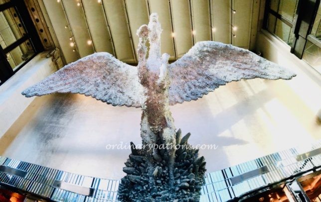 Brasserie of Light Selfridges is an amazing restaurant in the popular department store along Oxford Street. It is relatively new, having opened at the end of 2018. The star attraction at the restaurant is a 24-foot crystal encrusted Pegasus statue with a 30-foot wing span, “flying” above the diners. It is created by Damien Hirst (the artist whose creations include the famous stuffed shark in a clear case). We were there for breakfast and could not help gawking at it almost the whole time.