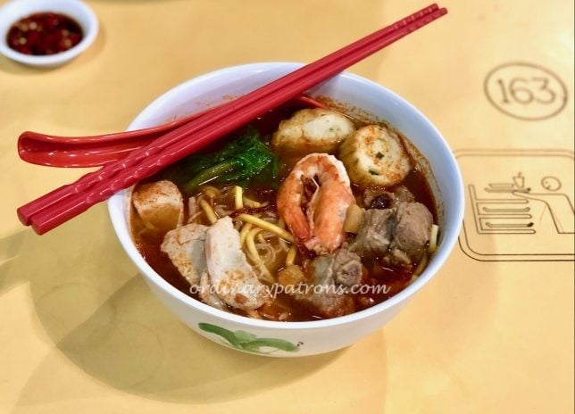 I can try to repeat what was said in the interview about the owners and how Prawn Village Ghim Moh Prawn Noodles got started and their background but it is better to watch the interview itself here. You can also get to see the lovely Yasminne Cheng in the video. Briefly, they originally started in Golden Mile and moved to Ghim Moh in 2017. Do note their unusual opening hours – Mondays to Saturdays from 4 pm to 9 pm. They are wisely pacing themselves for the long run. Prawn mee (like many other hawker food) requires a long preparation time.