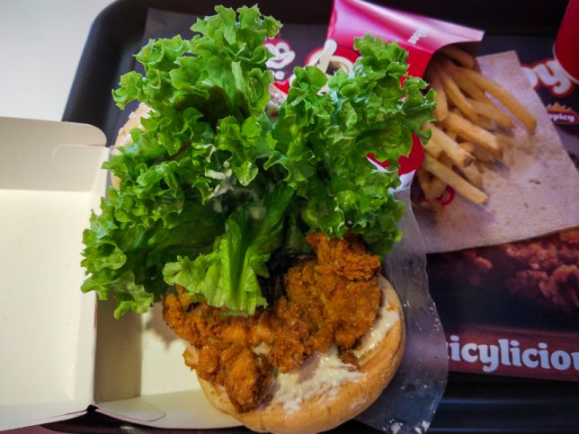 We had the Jollibee’s Chickenjoy Meal which comprised 2 pieces of chicken, a side of mashed potatoes and a soft drink. It was of the expected standard. The chicken was crispy on the outside and the inside was tender. It was not oily and was tasty.