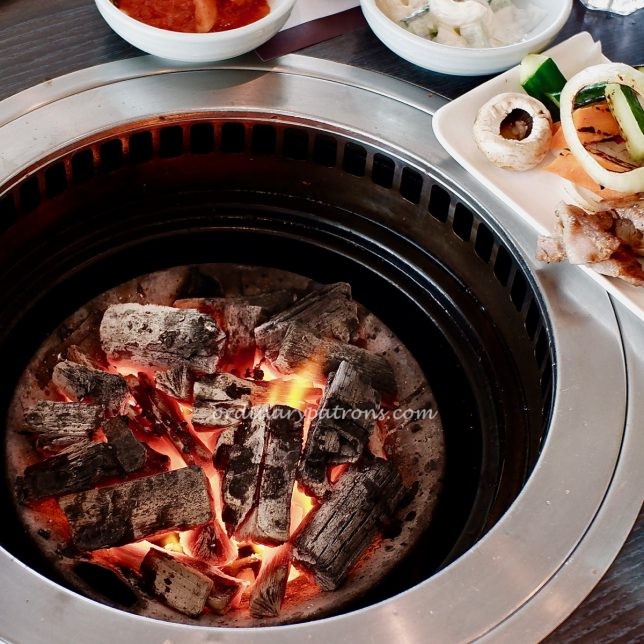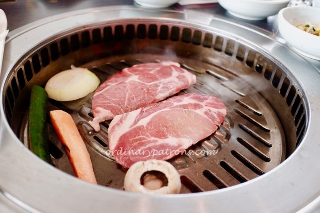 As is customary in Korean restaurants, an assortment of appetisers were served at the start of the meal. After that, the gas stove with charcoal was fired up. A member of the serving staff helped us with the cooking process.