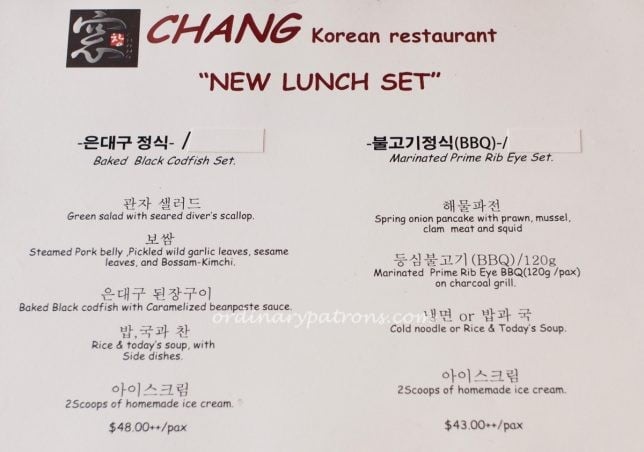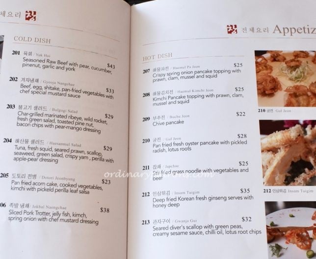 Here are pictures of the Chang Korean BBQ restaurant menu as well as a couple of sample pages from the main menu. We decided to make some selections from the ala carte menu.