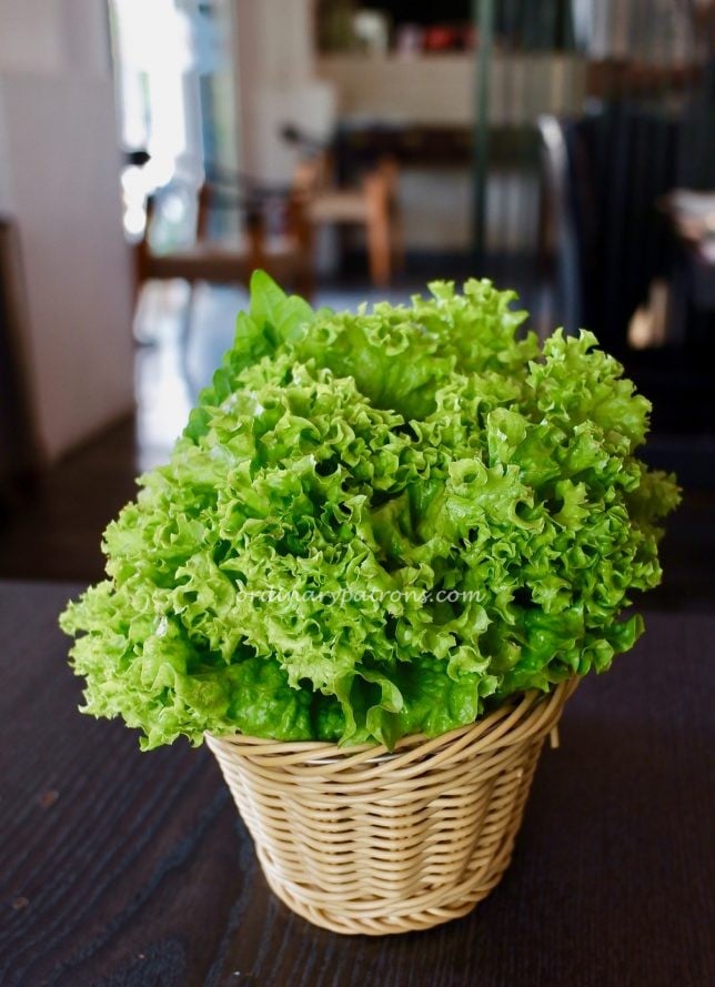 A basket of vegetables – lettuce and sesame leaves were available to be eaten with the meat. It is a pleasant and effective combination.
