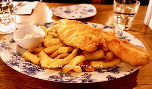 Bertie’s Fish and Chip’s restaurant in Edinburgh has an unusual layout. Once inside the building, we have to walk up two flights of stairs to get to the main dining hall. I believe the building was once a church. The restaurant is large and spacious. It has a fun and friendly atmosphere – somewhat like a Hard Rock Cafe. We did not expect a restaurant specialising in just fish and chips to be so large and busy. Nearly all the tables were occupied. It seemed like this is the central place to get fish and chips in Edinburgh.