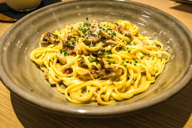 P+’s Truffle Chicken Alfredo Pasta was a nice satisfying dish. The linguine was well coated in a creamy, cheesy sauce with bacon bits, chicken slices and mushrooms adding a variety of textures and rich flavours.