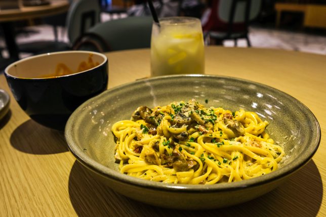 We had lunch at Poulet + Brasserie at ION and ordered the Truffle Chicken Alfredo Pasta “3 Course Feast” ($18) and Spicy Baked Eggs With Tomatoes ($15). Service Charge and GST would be added to the bill.