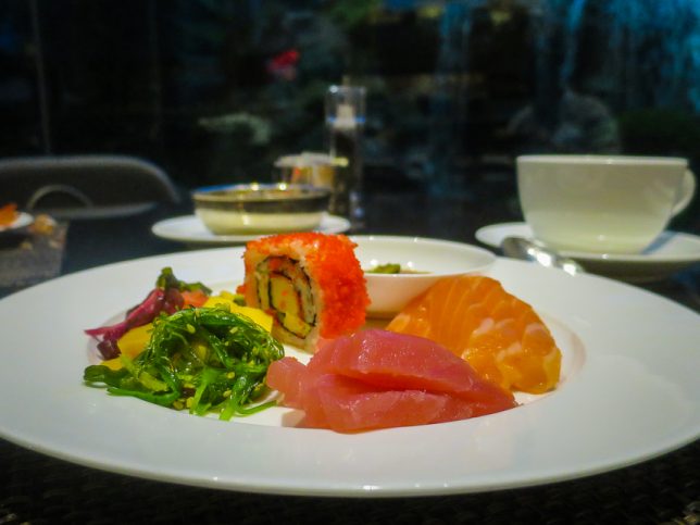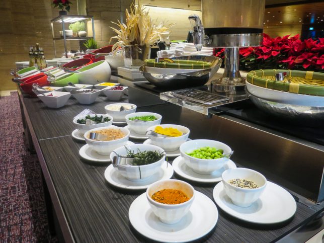 The Dining Room is located on the ground floor of Sheraton Towers. It is an open space with basic simple interior decorations. Its main features are its tall ceiling and full height glass panels on two sides of the restaurant. Diners can get a great view of Sheraton Towers’ signature cascading waterfall and lush landscaped gardens. In the evening you get the benefit of live piano performance at the adjacent Lobby Bar.
