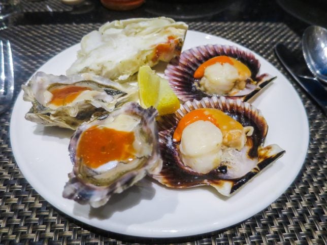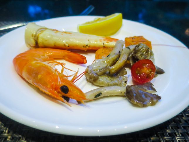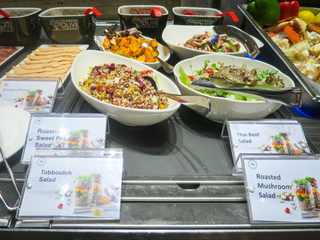 There is the usual popular fresh seafood station which offers shucked oysters, crabs, clams, mussels, prawns, scallops and more.