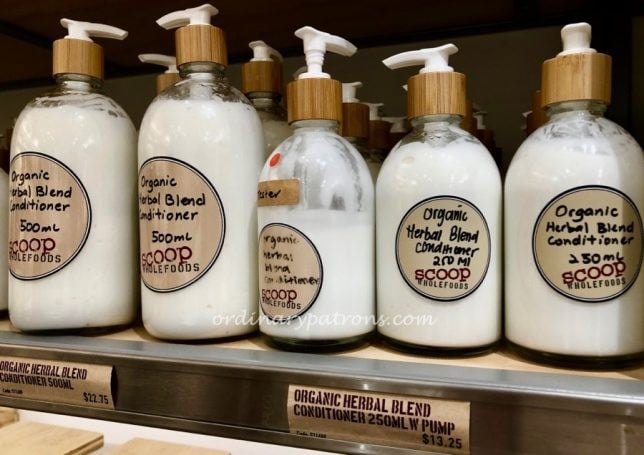 A wide range of products are available at Scoop Wholefoods Tanglin Mall, not just food. Household items like natural glass cleaner and mould control are dispensed by volume. Ditto for personal hygiene items like shampoo and moisturiser. The products are mainly sold by weight or volume. Customers who did not bring their own containers can buy empty ones.