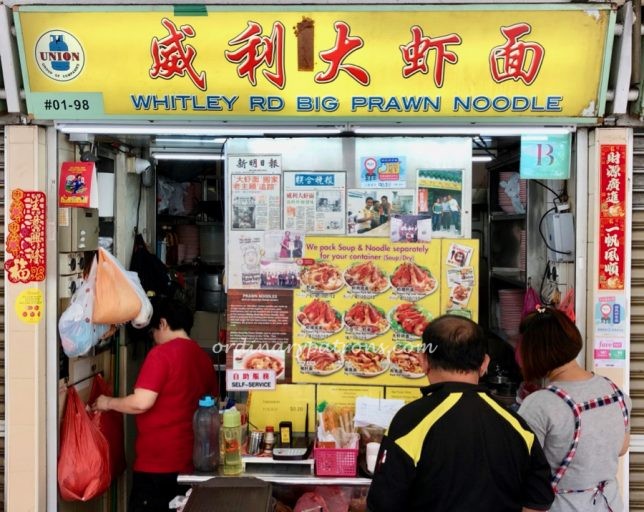 Whitley Road Big Prawn Noodle at Old Airport Road is one of the highly rated stalls. Many regard it as one of the best prawn noodles in Singapore. There was a short queue but the length of queue may be misleading as they employ a buzzer system. Customers place their order, make payment and are handed a buzzer. It is a good system as we can then secure a table and be seated while waiting for the food to get ready.