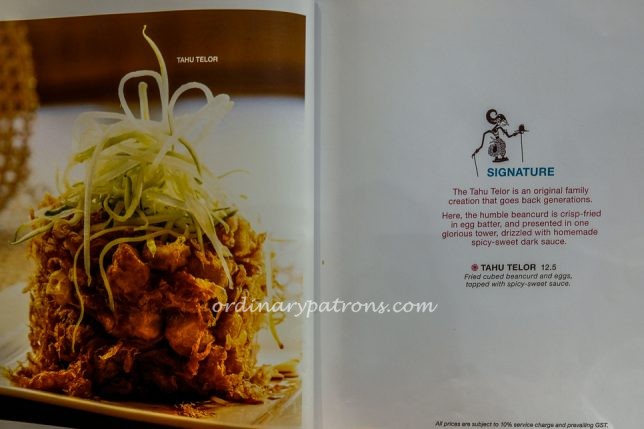 Here are some sample pages from the Tambuah Mas Great World City menu. We have not eaten at Tambuah Mas for quite a while but we can still remember many of the dishes. The tahu telur ($12.50), chicken satay ($9.90) and lontong were our instinctive selections. An order of nasi campur ($13) completed our lunch selection.
