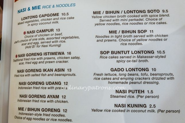 The lontong (picture above) and nasi campur (picture below) are quinetessential Indonesian dishes. Very nice and delicious. The latter is a complete meal for a single person – rice, vegetables, egg and a choice of chicken or beef. We selected beef rendang which was very tender and well cooked.