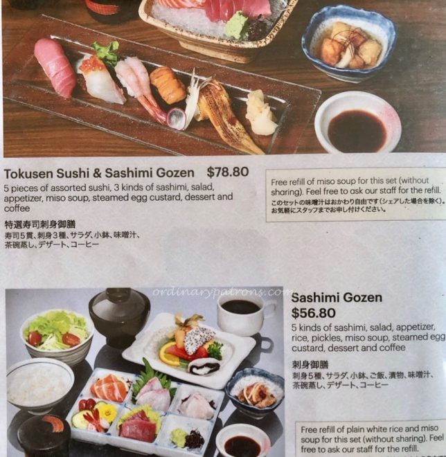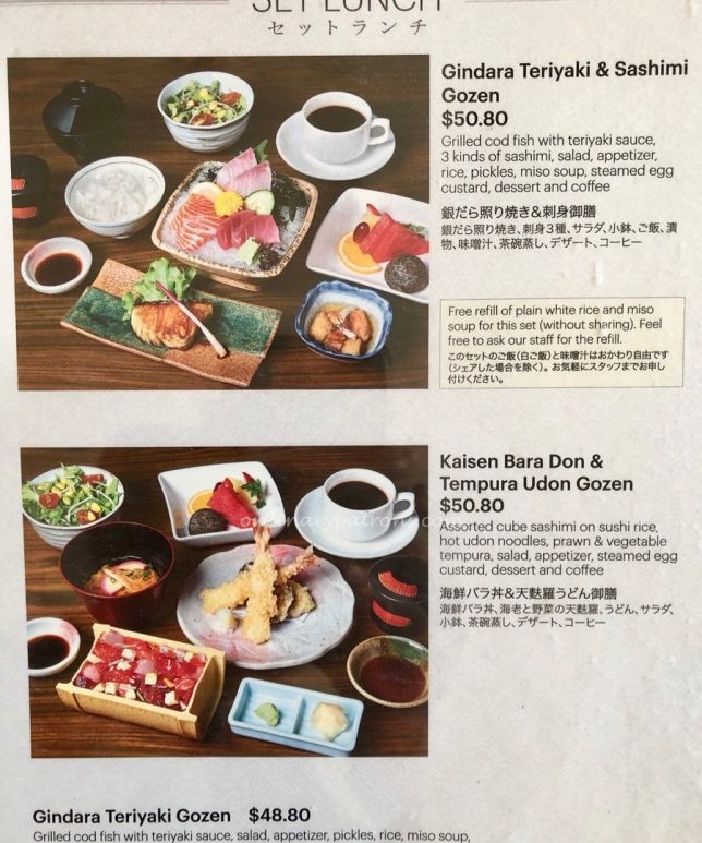 Kuriya Dining is a grand Japanese restaurant at Great World. It is located on the ground floor near the office towers and does not appear to have been affected by the renovations. We find the ala carte menu to be quite pricey, but the set menus appear reasonable.