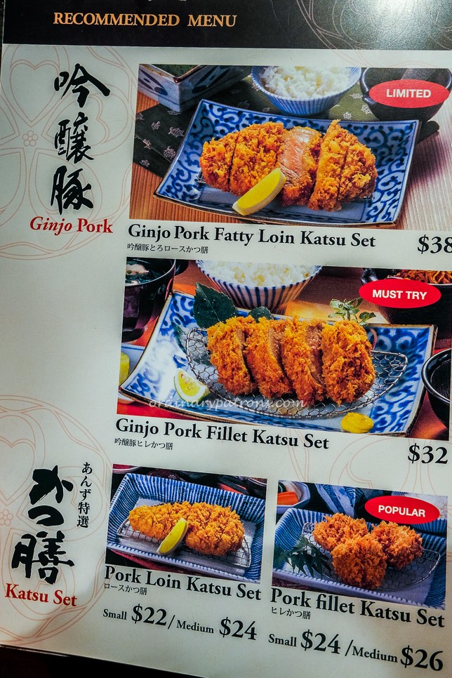 Ginza Anzu is a popular tonkatsu restaurant on the first level of Great World shopping mall. It was full of diners when we were there. According to the GWC website, Anzu is a “farm-to-table concept eatery” from Kyushu, Japan and are famous for tonkatsu (deep-fried pork).
