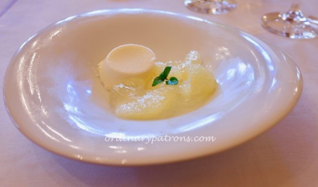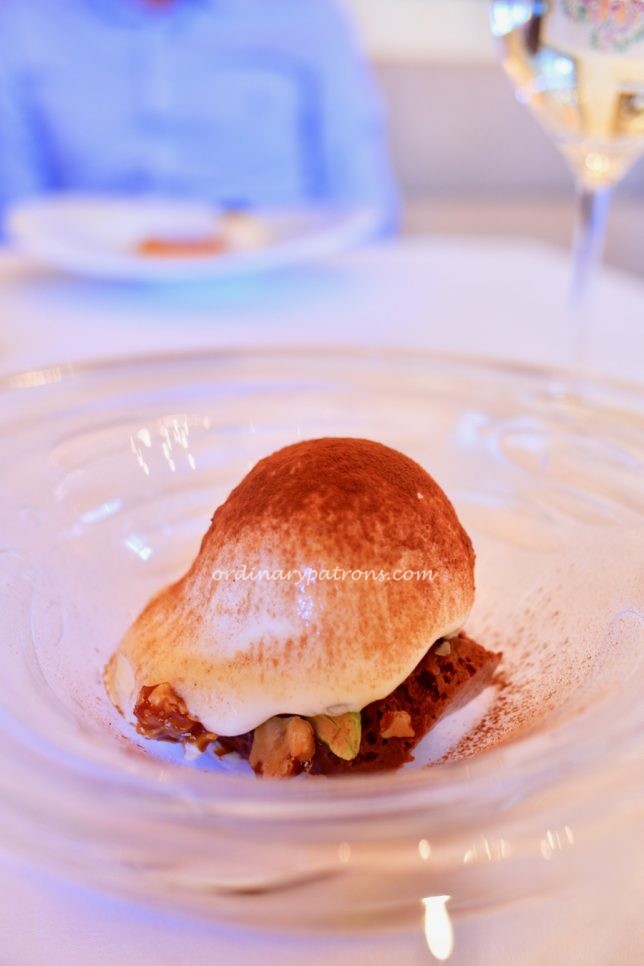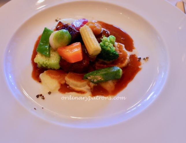 There was only one type of fish dish. A pan-fried fish in a light broth. This is the kind of dish that draws us to French restaurants in Tokyo. The broth was done Japanese style – very light yet with complex flavours. The dish was perfectly cooked with a very crisp skin.