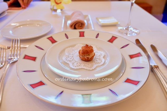 The meal started with a tiny amuse bouche. There was a choice of starters from the list of seven starters. The menu was written in Japanese and French. Fortunately most of the staff spoke English and we had some idea what the menu items were.