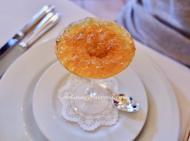 The third starter (picture below) looked disappointing when it arrived. It looked like a plain glass of carrot jelly. But buried inside the jelly was a creamy mix of various ingredients. We could taste some sea urchin in it. It was a pleasant surprise.