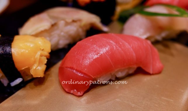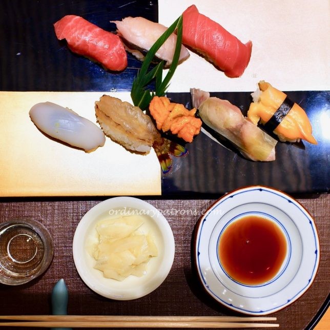 The design of the dining room that we were assigned to is quite unusual. Unlike many Tokyo sushi restaurants which opt for basic minimalist designs, this was quite a fancy room in terms of the decor and the layout. Service was top notch – gentle and prompt.