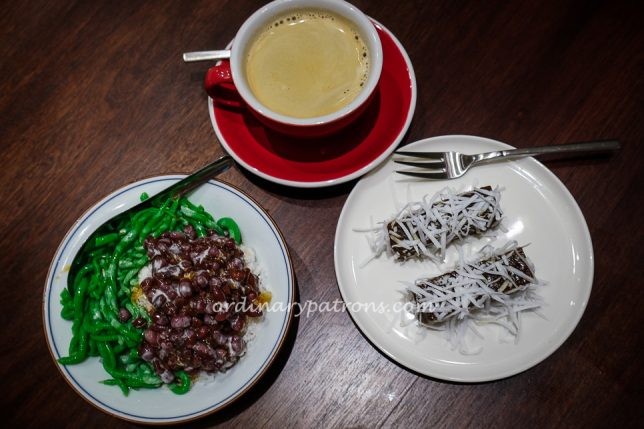 For desserts we had chendol ($5, picture above) and kueh ko swee, a soft nonya kueh made with gula melaka with coconut shreds ($5, picture below). The chendol was average but the kueh was very good. The coffee ($4.5 / $4 for cappuccino and black respectively) was watery and disappointing.