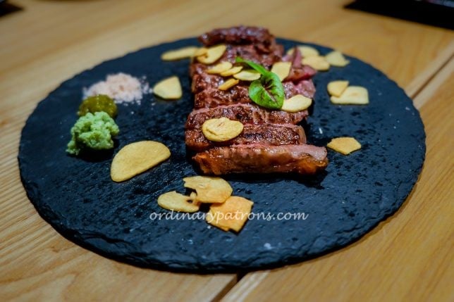 We had mixed feelings with the other items that we ordered. The grilled squid ($18, picture above) with the squid ink paste was quite enjoyable. We thought that the wagyu beef ($35, picture below) was ordinary.