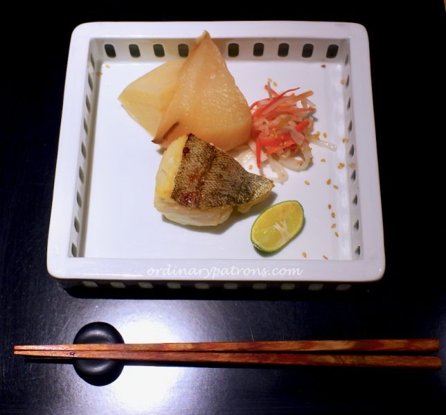 Next were a couple of cooked fish dishes miso grilled cod fish (above picture) and yellowtail and crab hotpot (picture below). The cod was pretty good. The hotpot was exceptionally tasty. Cooked with daikon, gingko nuts and taro, the broth was delightful. Not a drop was wasted.