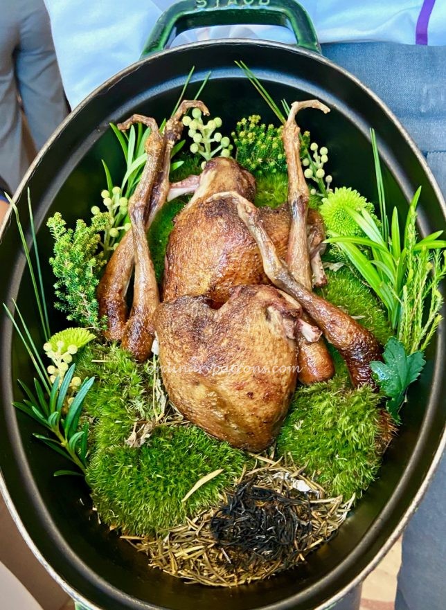 Odette Singapore restaurant’s signature dish is the Rosemary Smoked Organic Egg. Like a true diva, she arrived in dramatic fashion. Smoke from dry ice and smokey rosemary leaves excite the eyes and the nose. Each egg was served into in a glass globe atop a bunch of smoking leaves. They not only taste good but look and smell great as well.