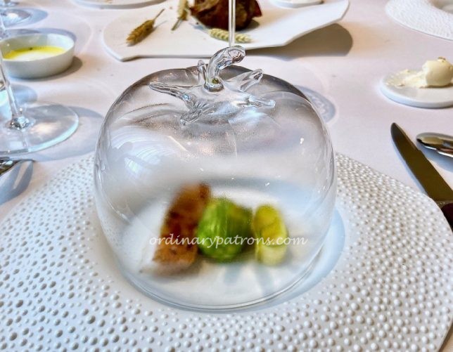 There were only two lunch options available at Odette Singapore at the time of our visit at the end of August 2020 : the 6 course $248++ “Terre & Mer” course and the “Indulgence” $358++ . As expected these days, it was the rule that everyone on the table had to order the same course. We were invited to lunch to celebrate a special occasion that happens once in 20 years. We lifted our eyes to get the cue from the host. She said, “the Indulgence menu looks nice”. Fireworks celebrations were set off in our hearts. But we calmly said, “we are happy with either, in fact the T & M option would be more than enough”, but not in an assertive way. The host’s view prevailed.