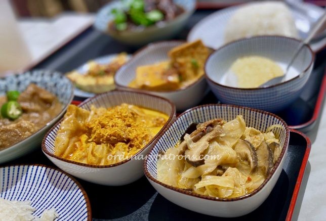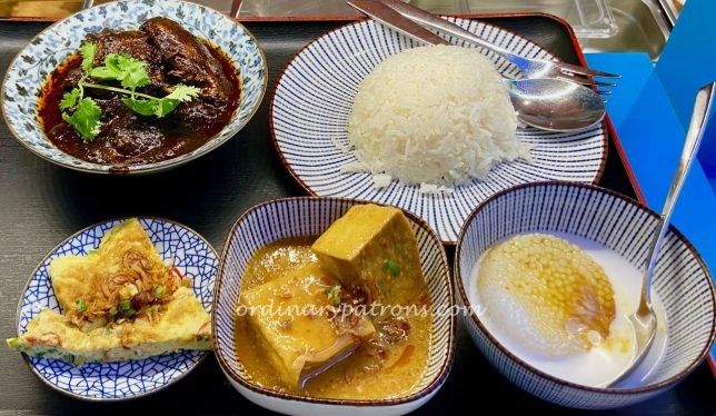 The four side dishes available were chap chye, sayur masak lemak, chincalok omelette and Nyonya tauhu. Since we could select two each, we tried all of them. They were all nice and it is hard to choose among them. If I had to pick two it would be the sayur masak lemak and the tauhu. The former because it had some spiciness that the chap chye does not.