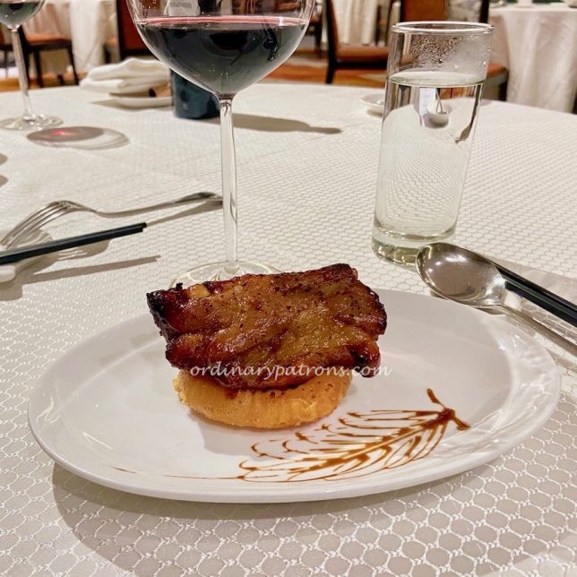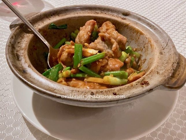 The next two dishes were more substantial ones – baked spare ribs with BBQ sauce ($14 each, above picture) and stewed beef with ginger ($28). These are two dishes that went well with rice and the wine.