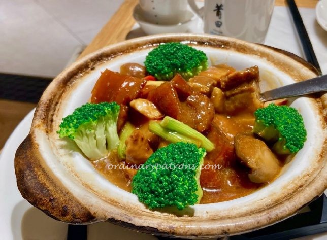 Pieces of sea cucumber were served together with broccoli, mushroom, roast pork and chestnut in a small claypot. The vegetables were the most prominent items and they were cooked just right with still some crunch in them. Like typical sea cucumbers they only have a mild taste of their own and mostly absorbs the taste of the gravy which was very good. We used some of the gravy to eat with the Heng Hwa bee hoon. The best part of the dish were the chestnuts but there were very few of them.
